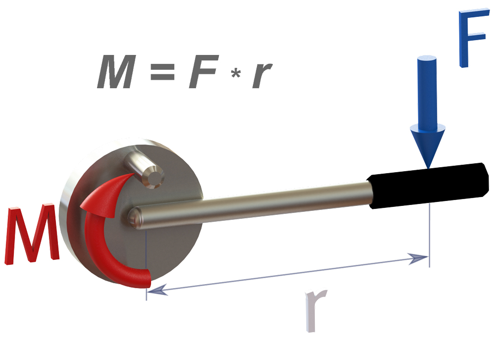 Das Drehmoment (lat: momentum = Bewegungskraft) ist eine physikalische Größe in der Mechanik und wird mit der SI-Einheit Newtonmeter [Nm] und dem Formelzeichen M bezeichnet. Genau wie die Kraft ist auch das Drehmoment eine gerichtete bzw. vektorielle Größe.